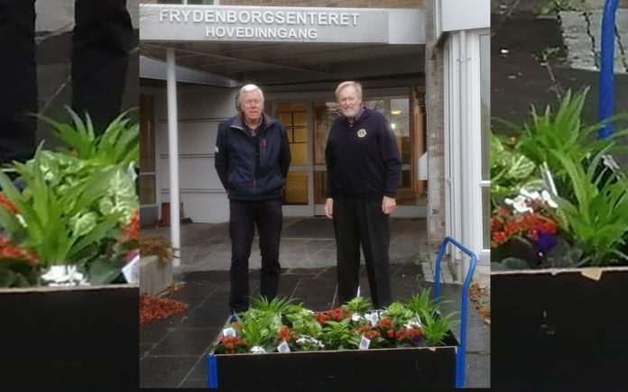 – Av samme årsak så måtte denne blomsterrunden med utdeling av blomster til de eldre, kuttes ut i år. Men, tradisjoner skal holdes i hevd, om enn på en annen og mer snever måte. Lionsmedlemmene var skjønt enig i at blomstene skulle avleveres i år som i tidligere år.  Så i stedet for å møte opp mannsterke og gå fra avdeling til avdeling, ble det til at to av medlemmene måtte nøye seg med å avlevere blomstene utenfor døren til Frydenborgsenteret, noe som ikke blir helt det samme.